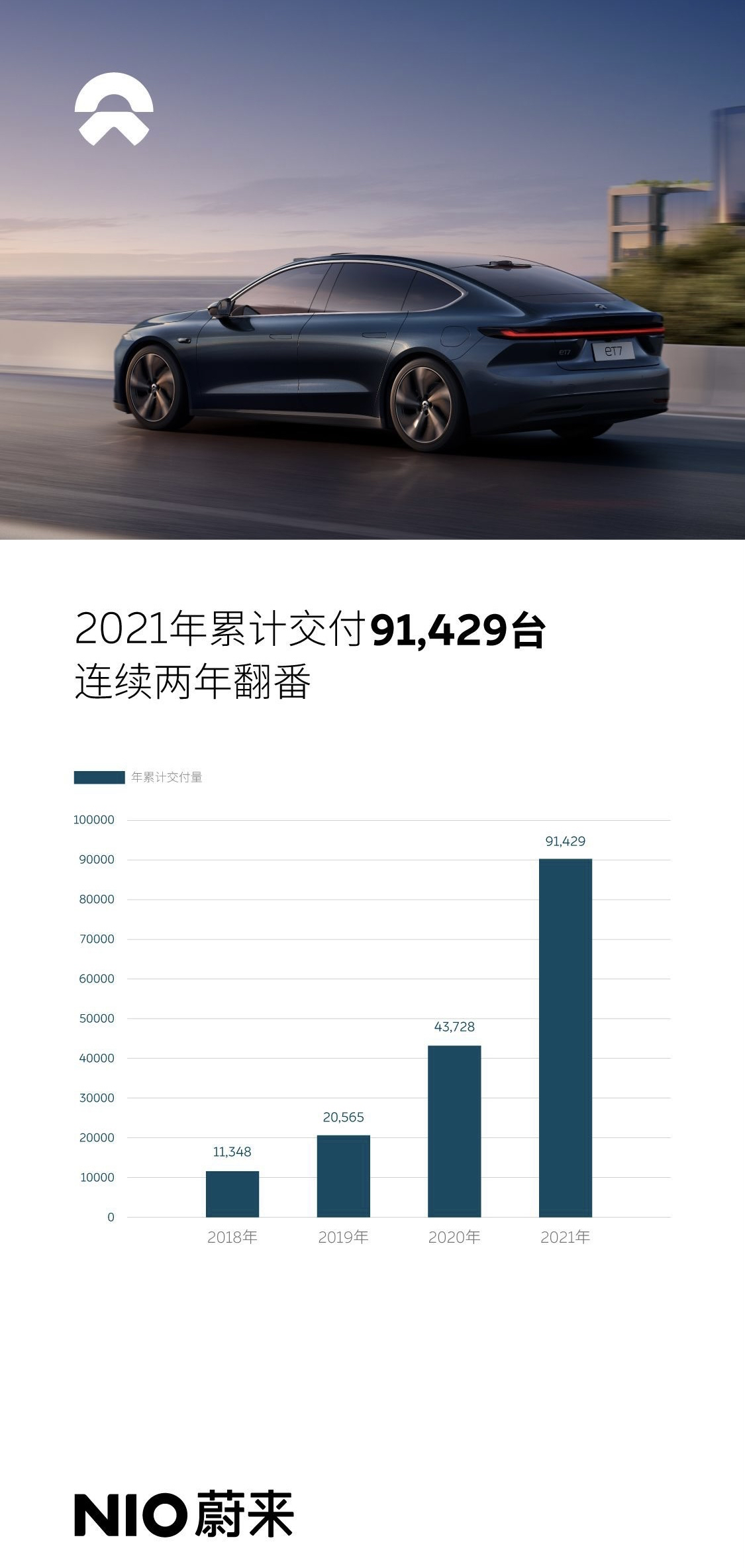 In full year 2021, NIO delivered 91,429 vehicles, a year-on-year increase of 109.1%. Since the start of delivery, NIO has delivered a cumulative total of 167,070 vehicles.